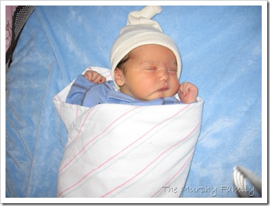 Well Patrick entered this world at 11:28 PM after 15 hours of labor. It was hard to tell who he looked like, although he had my coloring. He had lots of dark hair (maybe that attributed to all my heartburn)